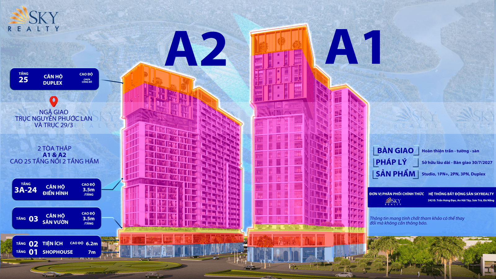 Dự án gồm 02 tòa tháp căn hộ A1 & A2 với thiết kế hiện đại, tầm nhìn panorama 360°.