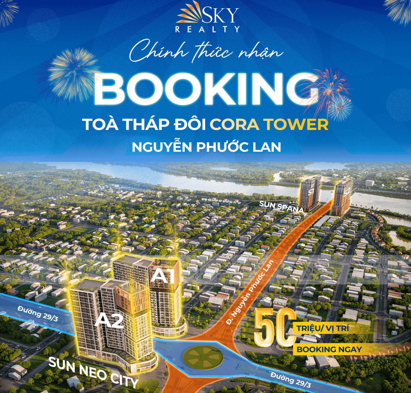 Sun Neo City trân trọng giới thiệu CORA TOWER – Tổ hợp hai tòa tháp biểu tượng, tọa lạc tại giao điểm huyết mạch của trục Nguyễn Phước Lan và đường 29/3, nơi trung tâm kết nối toàn khu đô thị.